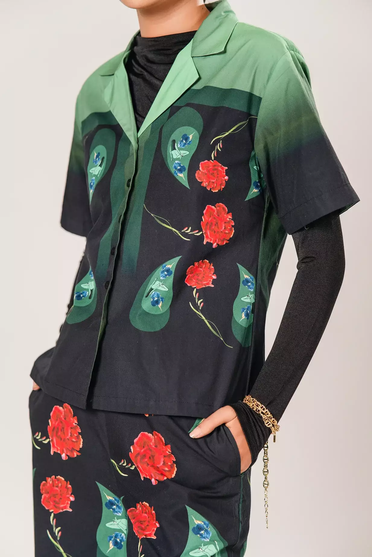 - Camp collar shirt with half sleeves for a relaxed, modern look.